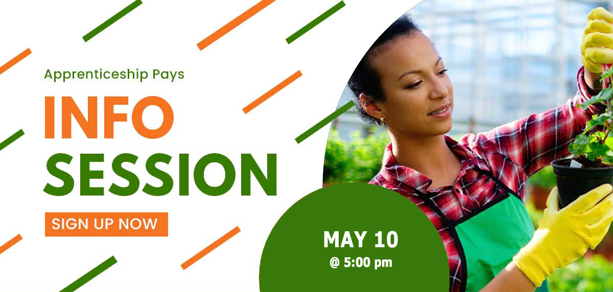 Everyone is welcome to join us for a FREE virtual information session to learn about all the benefits the Horticulture Technician Apprenticeship Program offers: skilled workers, career advancement, and financial incentives.