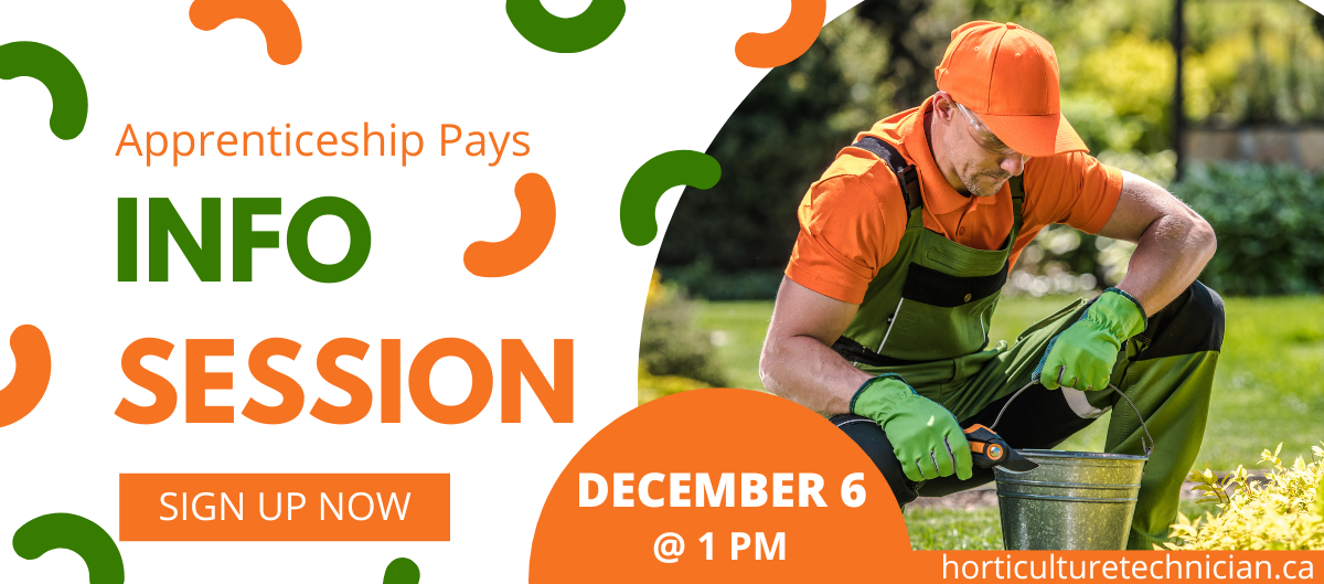 Everyone is welcome to join us for a FREE virtual information session to learn about all the benefits the Horticulture Technician Apprenticeship Program offers: skilled workers, career advancement, and financial.