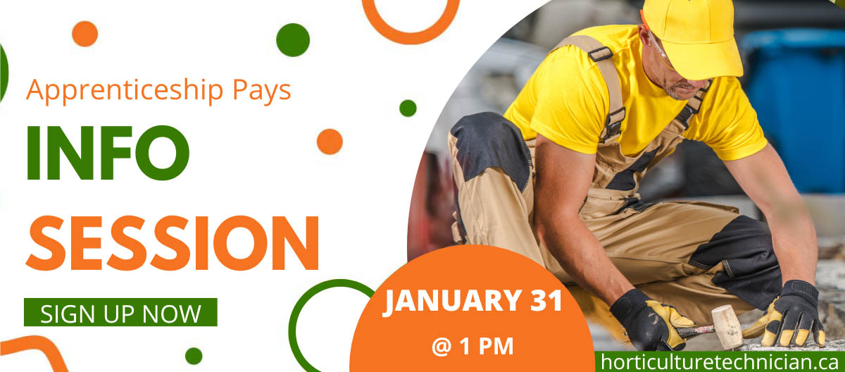 Everyone is welcome to join us for a FREE virtual information session to learn about all the benefits the Horticulture Technician Apprenticeship Program offers: skilled workers, career advancement, and financial.