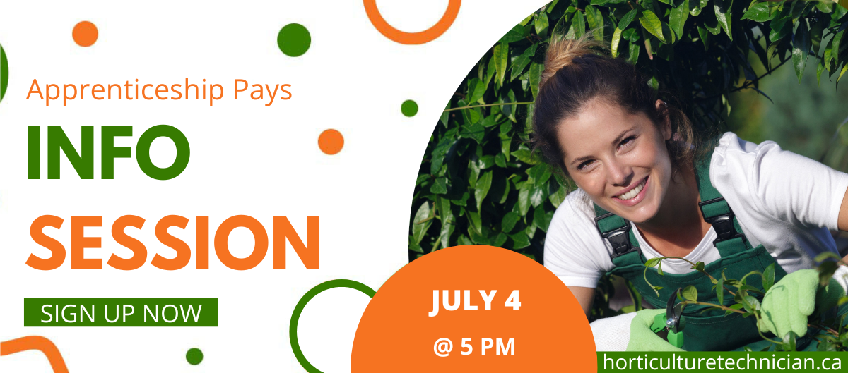 Everyone is welcome to join us for a FREE virtual information session to learn about all the benefits the Horticulture Technician Apprenticeship Program offers: skilled workers, career advancement, and financial.