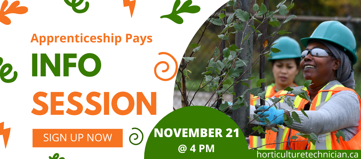 Everyone is welcome to join us for a FREE virtual information session to learn about all the benefits the Horticulture Technician Apprenticeship Program offers: skilled workers, career advancement, and financial.