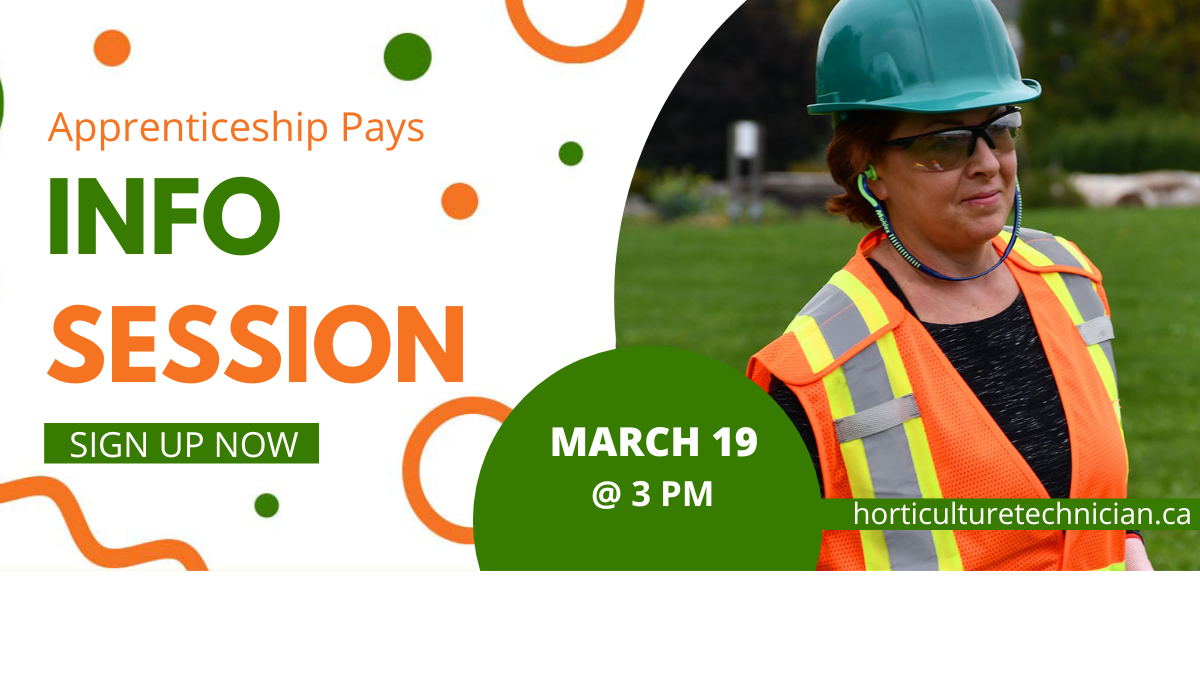 Everyone is welcome to join us for a FREE virtual information session to learn about all the benefits the Horticulture Technician Apprenticeship Program offers: skilled workers, career advancement, and financial.