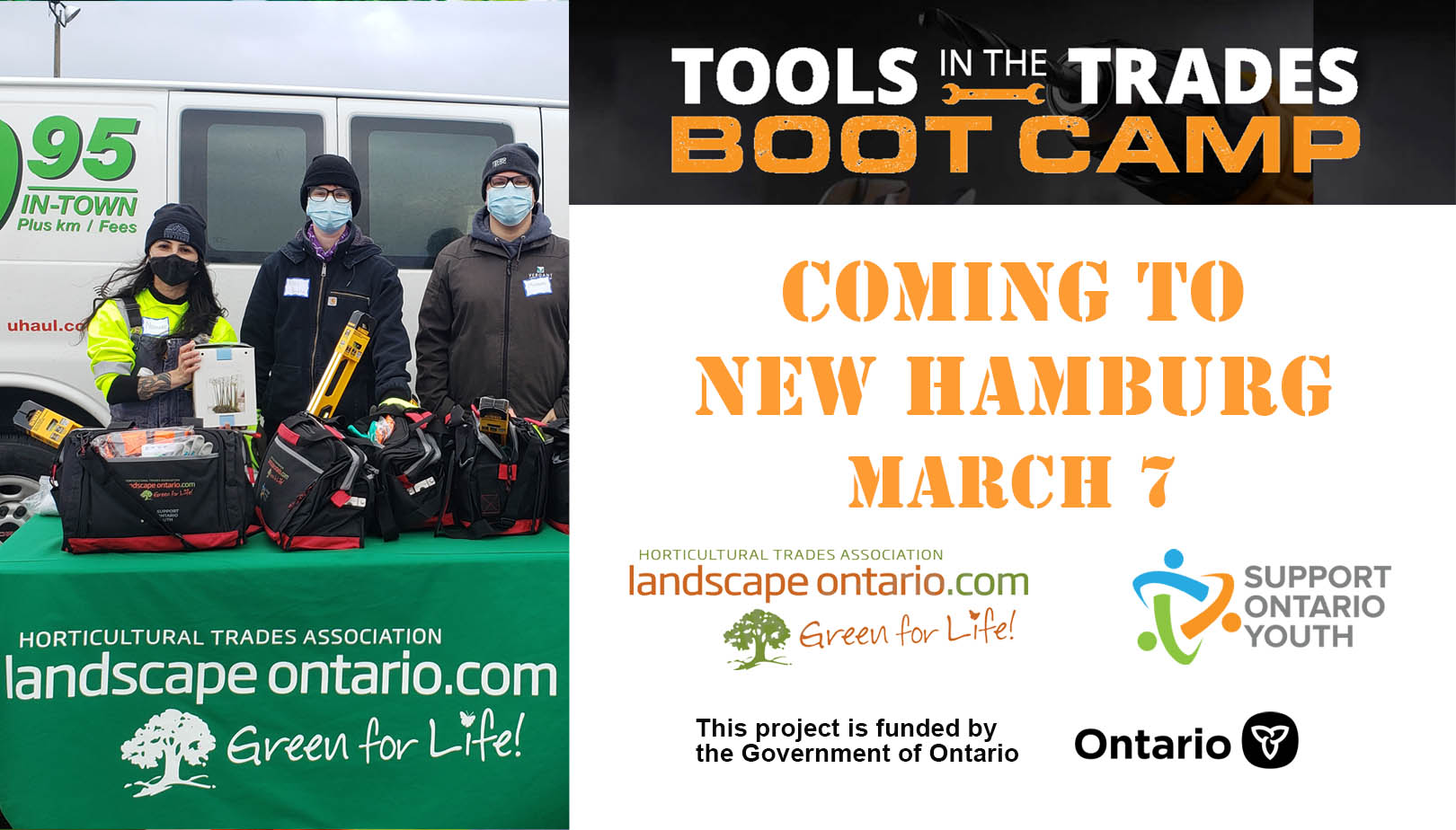 Come join us at Tools in the Trades Boot Camps, where apprentice candidates from around the province, both graduating SHSM students and adult job seekers, will be taking part in a one-day, intensive introduction to the trades hosted by Support Ontario Youth and Landscape Ontario.