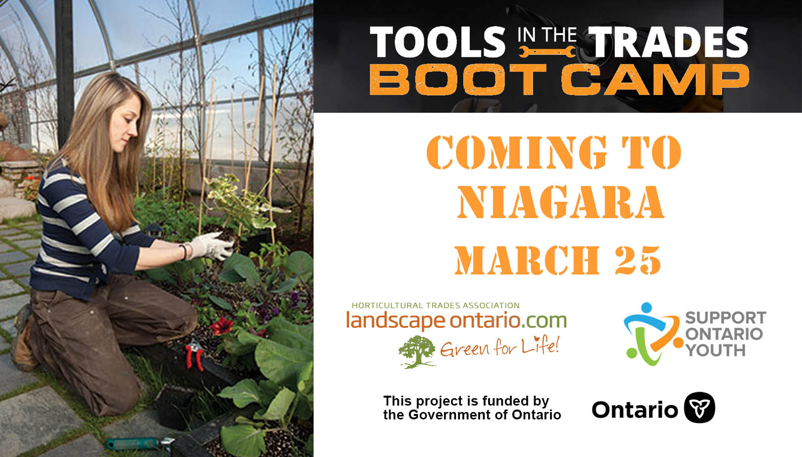 Come join us at Tools in the Trades Boot Camps, where apprentice candidates from around the province, both graduating SHSM students and adult job seekers, will be taking part in a one-day, intensive introduction to the trades hosted by Support Ontario Youth and Landscape Ontario.