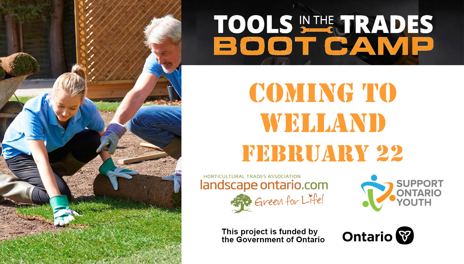 Come join us at Tools in the Trades Boot Camps, where apprentice candidates from around the province, both graduating SHSM students and adult job seekers, will be taking part in a one-day, intensive introduction to the trades hosted by Support Ontario Youth and Landscape Ontario.