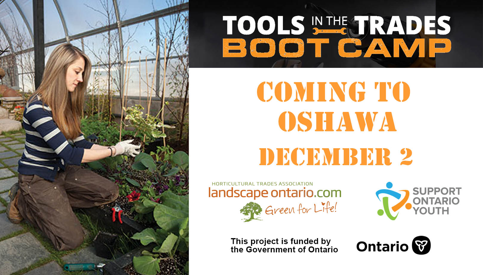 Come join us at Tools in the Trades Boot Camps, where apprentice candidates from around the province, both graduating SHSM students and adult job seekers, will be taking part in a one-day, intensive introduction to the trades hosted by Support Ontario Youth and Landscape Ontario.