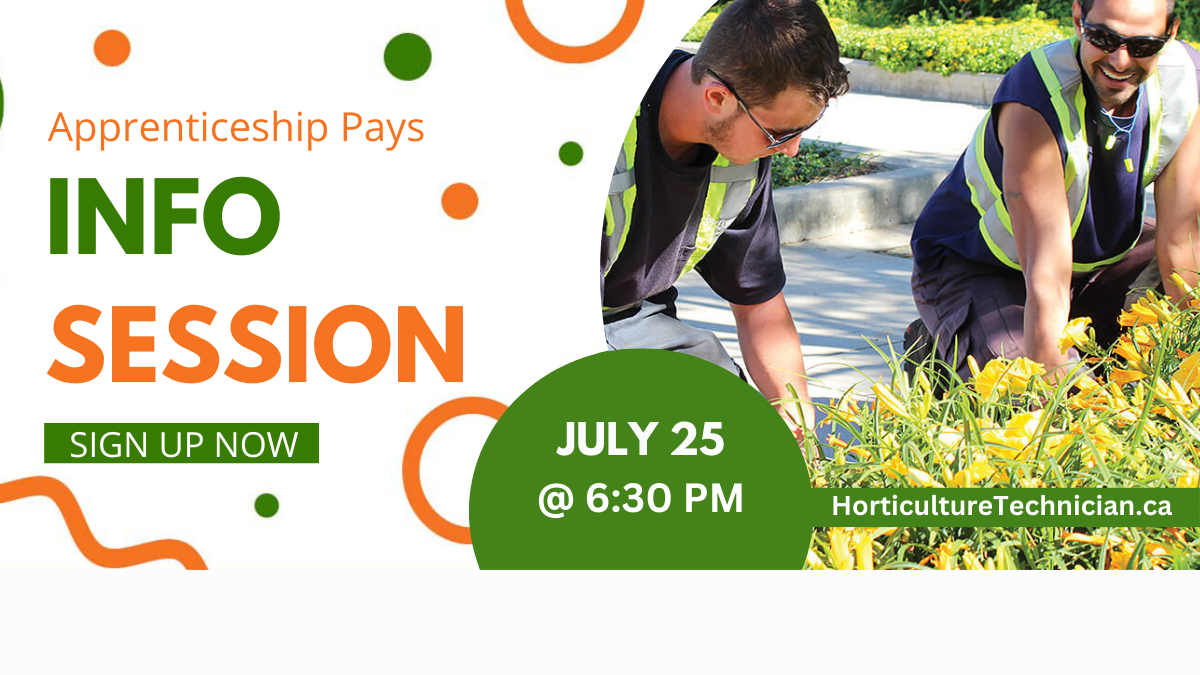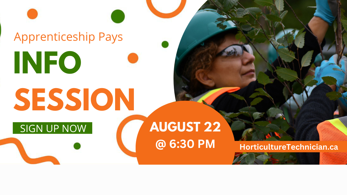 Everyone is welcome to join us for a FREE virtual information session to learn about all the benefits the Horticulture Technician Apprenticeship Program offers: skilled workers, career advancement, and financial. SIGN UP NOW FOR A FREE INFORMATION SESSION AUGUST 22 @ 6:30 PM