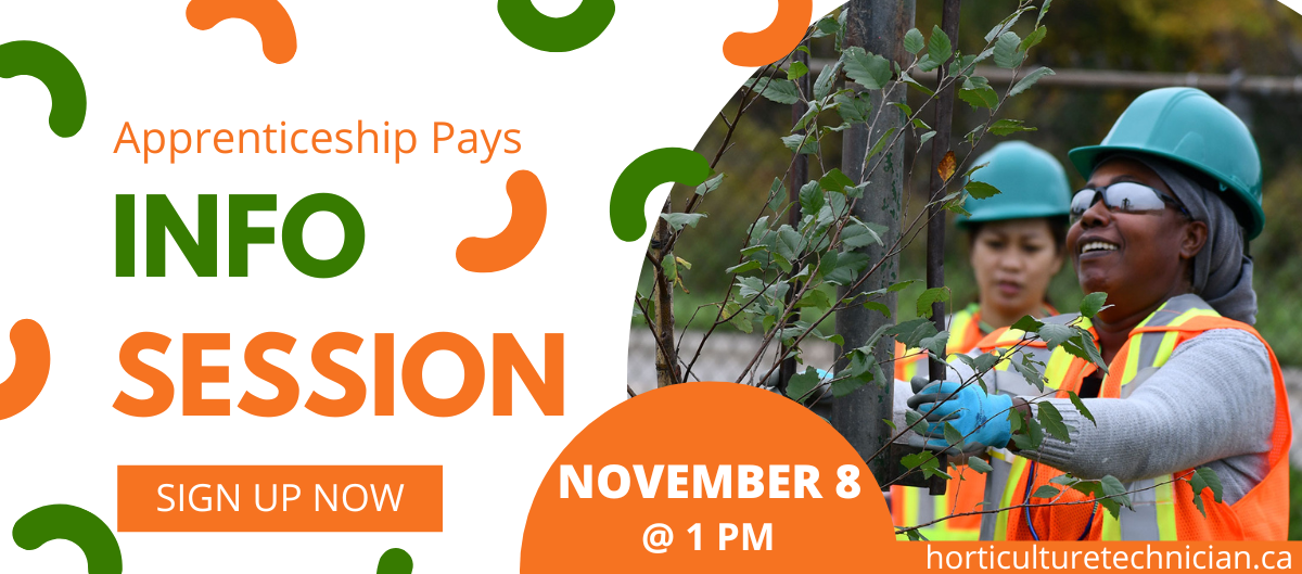 Everyone is welcome to join us for a FREE virtual information session to learn about all the benefits the Horticulture Technician Apprenticeship Program offers: skilled workers, career advancement, and financial incentives. SIGN UP NOW FOR A FREE INFORMATION SESSION July 12 @ 5:00 PM
